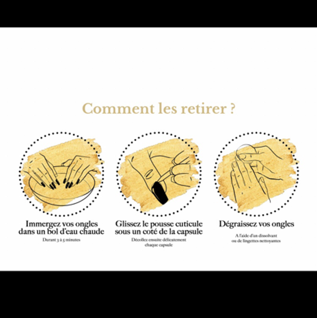 Pratique et économique, les faux-ongles sont réutilisables ; il suffit seulement de retirer le reste de Gel Pad.
